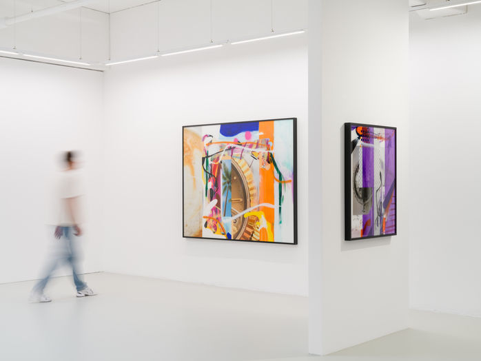 In his new exhibition, the artist explores the shifting dialogue between human intuition and artificial intelligence. Digital compositions meet painterly gestures, creating images suspended between precision and emotion, control and chance. Metallic surfaces, resin layers and vibrant fields of color reflect on the act of seeing and the transformation of image-making in the age of technology.